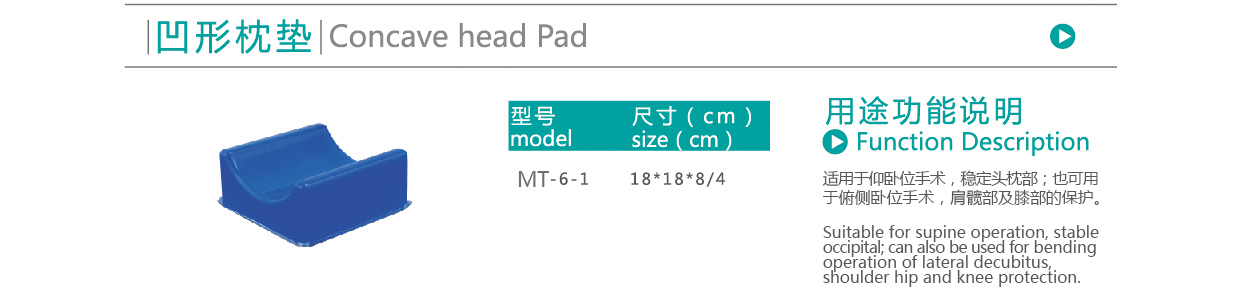 【产品用途】:适用于仰卧位手术,稳定头枕部;也可用于俯侧卧位手术,肩髋部及膝部的保护