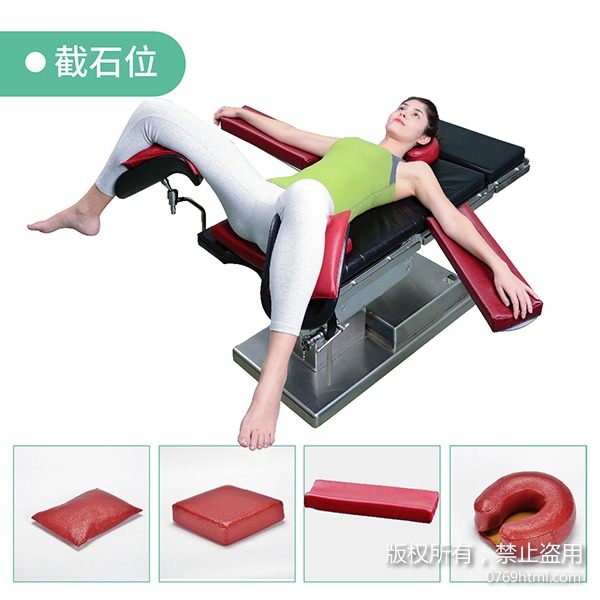 截石位姿势是患者仰卧,臀部齐手术床缘,两腿屈髋、双膝置于腿架上,两腿间角度约为60-90°。适用于直肠、肛门、会阴等部位手术,接触病床的头部、肘部、臀部、腘窝部预防褥疮需要使用手术午夜成人视频,此方案包含高碗头圈、上肢凹形午夜成人视频、臀垫和记忆棉方垫。
